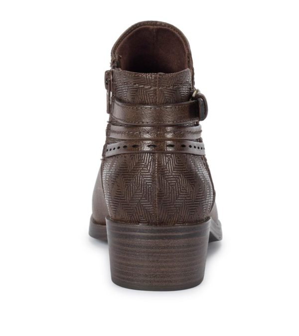 The Baretraps Medley is the perfect three season ankle bootie.This low cut bootie is built on our Baretraps cushioned insoles for superior comfort and features a synthetic upper construction with side zippered entry, a wide block heel with a decorative buckle.